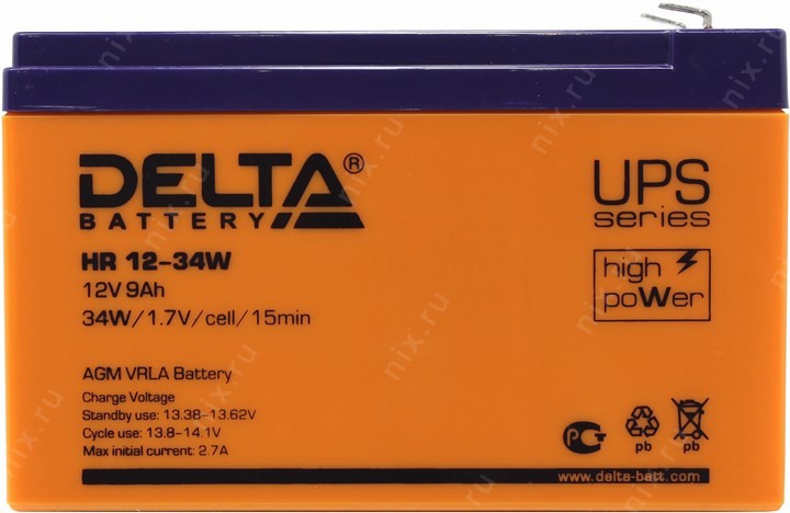 Свинцово-кислотные аккумуляторы DELTA серии HR являются герметизированными, необслуживаемыми с системой рекомбинации газов (VRLA). Изготавливаются по технологии AGM (электролит, абсорбированный в сепараторе). Благодаря данной технологии аккумуляторы являются непроливаемыми и имеют превосходные разрядные характеристики на коротких временах разряда. Серия HR относится к линейке DELTA UPS series, разработанной специально для использования в источниках бесперебойного питания, таких, как: APC EATON GE Powercom Emerson AEG Socomec Riello Emerson (Liebert) Ippon Newave VISION UPS