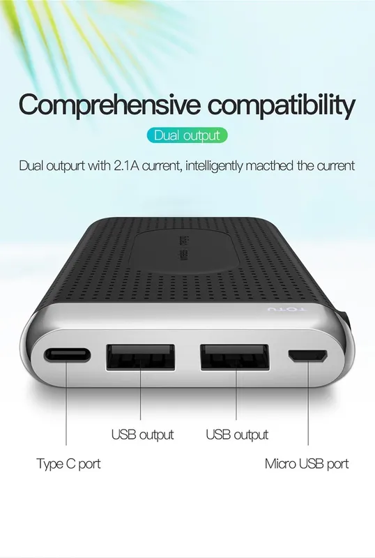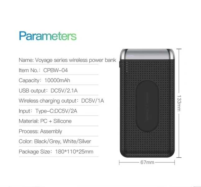 Портативный аккумулятор Totu Voyage Wireless series 10000 mAh CPBW-04 2USB, 912362, белый, серебристый