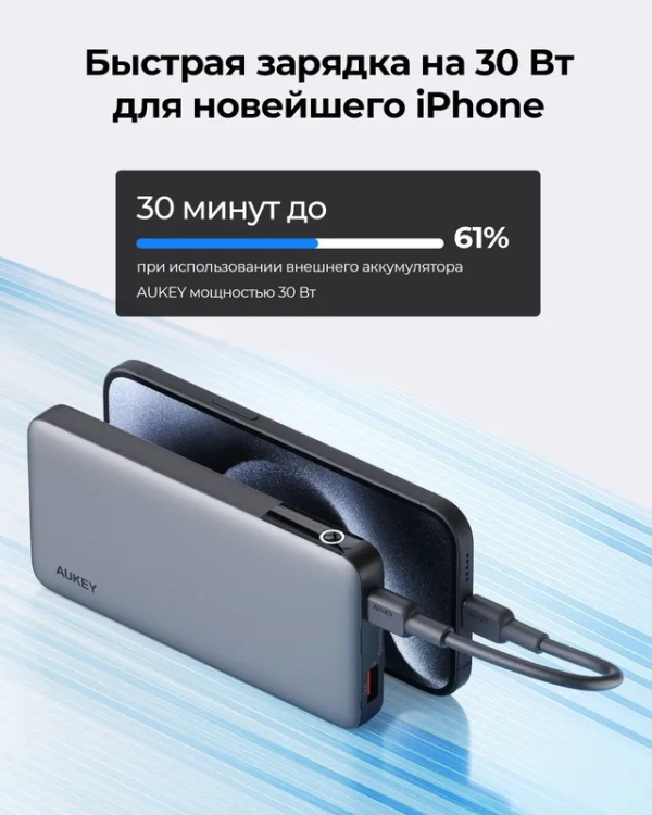 Портативный аккумулятор AUKEY Sprint X <PB-Y41 Gray> (USB, USB-C, 10000mAh, 30W, Li-Ion)