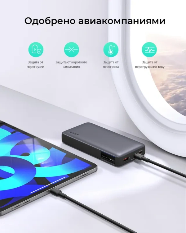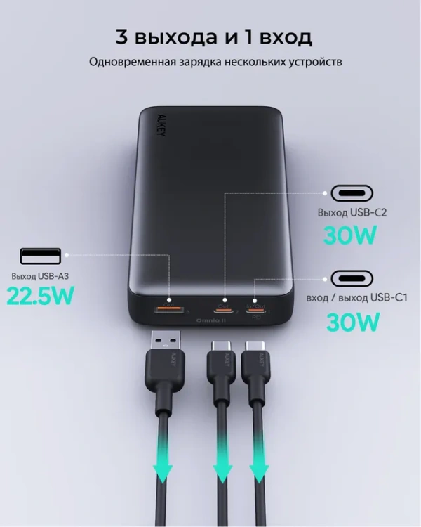 Портативный аккумулятор AUKEY Sprint X <PB-Y42 Gray> (USB, 2xUSB-C, 20000mAh, 30W, Li-Ion)