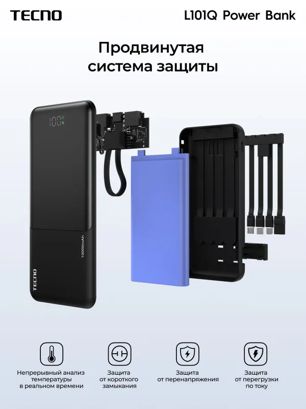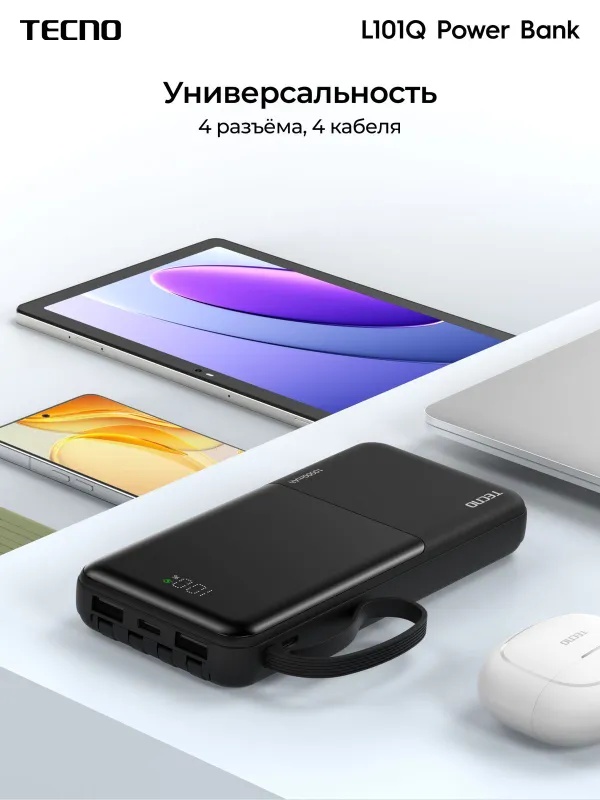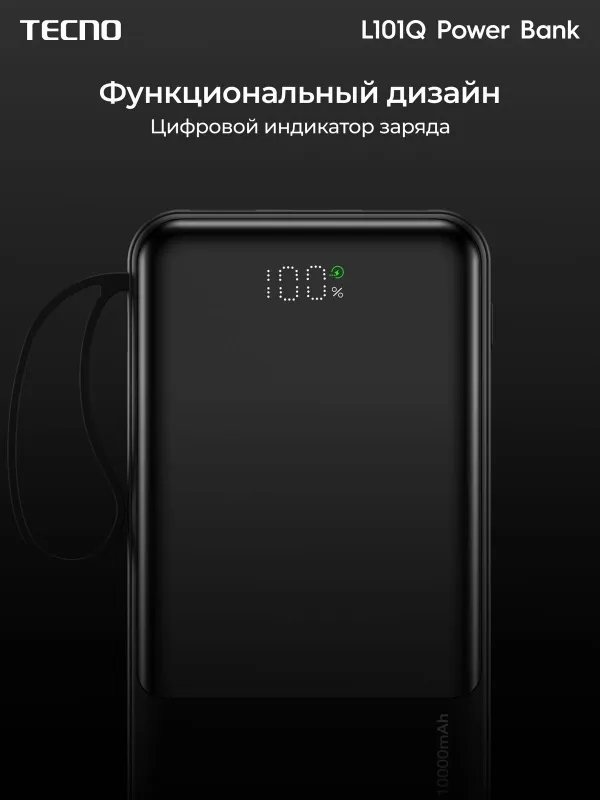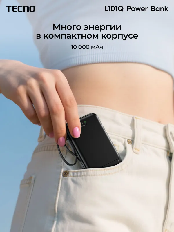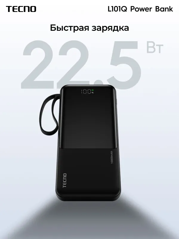 Портативный аккумулятор Tecno OnGO L101Q, 10000 мАч, 22.5 Вт, черный, 10319220