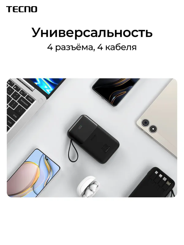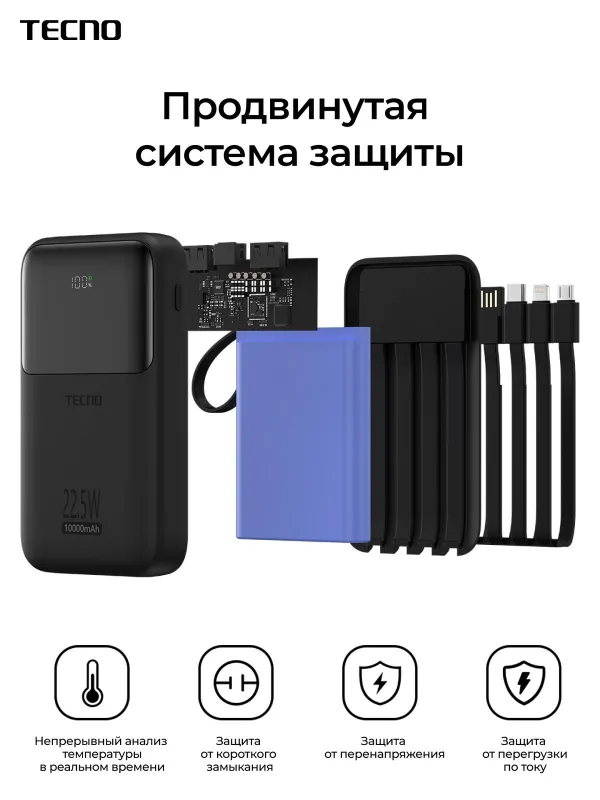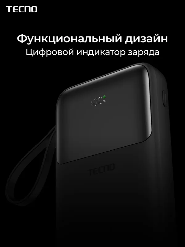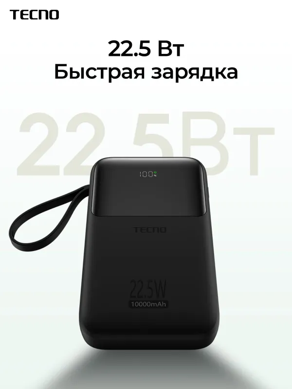 Портативный аккумулятор Tecno Pocket S101Q, 10000 мАч, 22.5 Вт, черный, 10319214