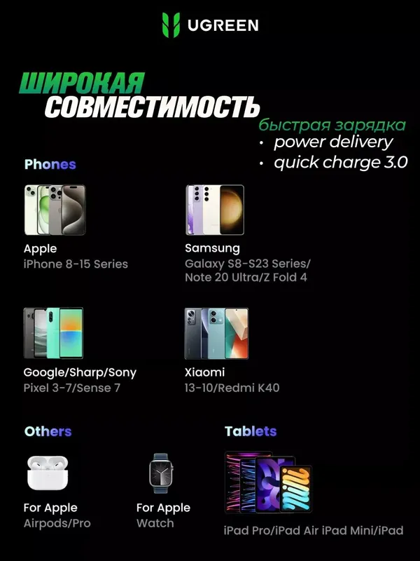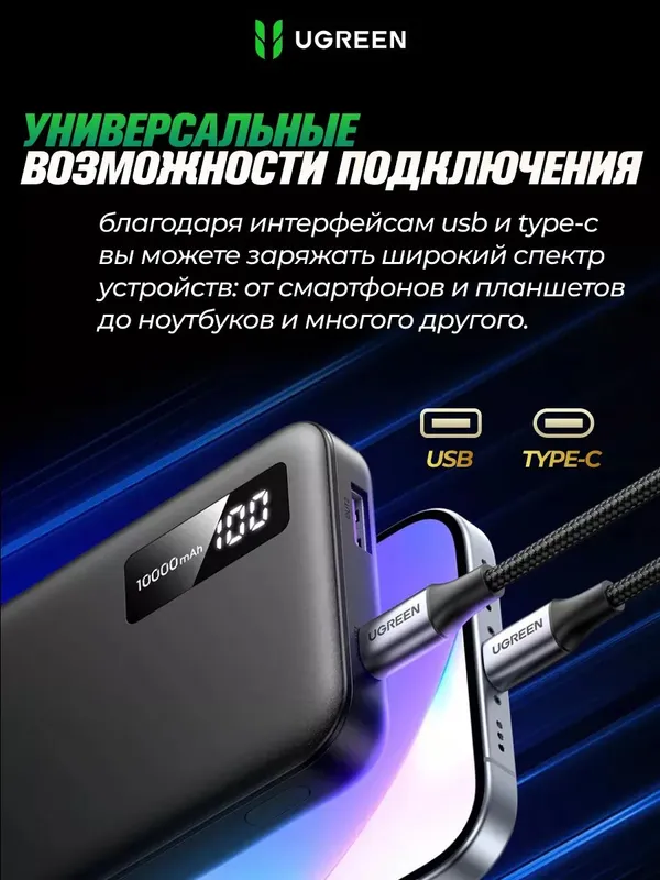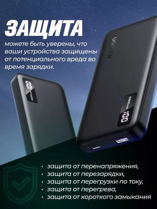 Портативный аккумулятор Ugreen , 10000 мАч, 20 Вт, черный, 25742_
