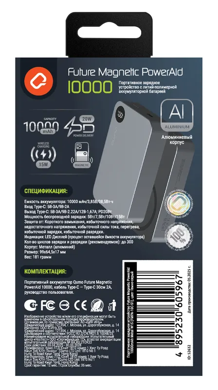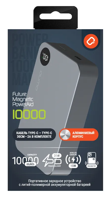 Портативный аккумулятор QUMO Future Magnetic PowerAid 10000 mah , серый металлик, FMPA-10C-S1
