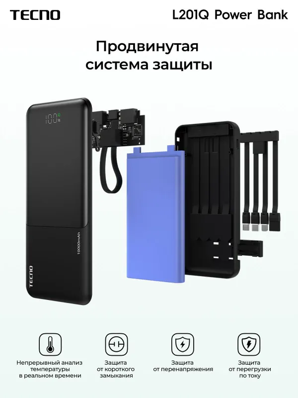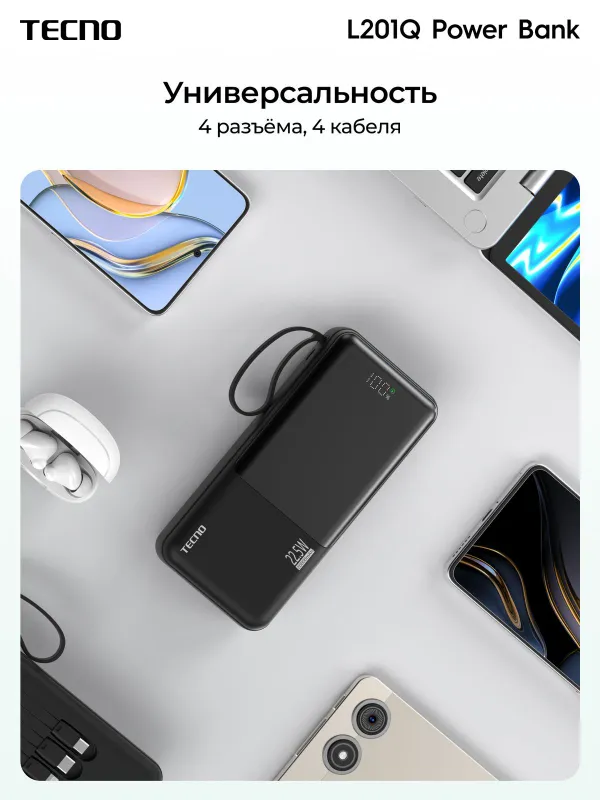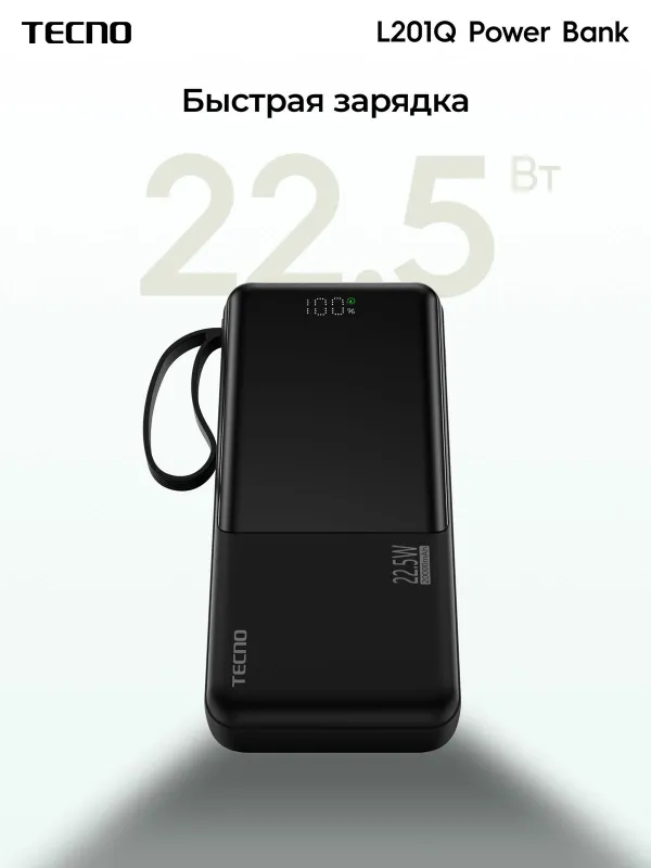 Портативный аккумулятор Tecno Pocket L201Q, 20000 мАч, 22.5 Вт, черный, 10319224