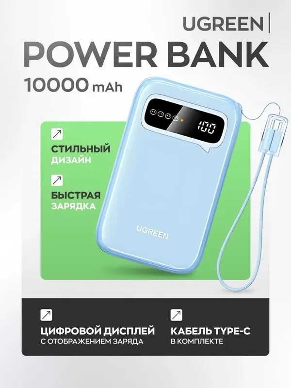 Портативный аккумулятор Ugreen , 10000 мАч, 20 Вт, синий, 45423_