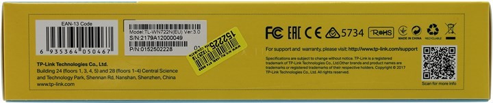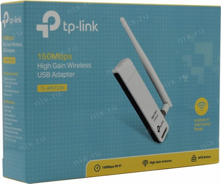 Адаптер беспроводной связи TP-LINK <TL-WN722N> High Gain Wireless USB Adapter (802.11b/g/n, USB2.0)