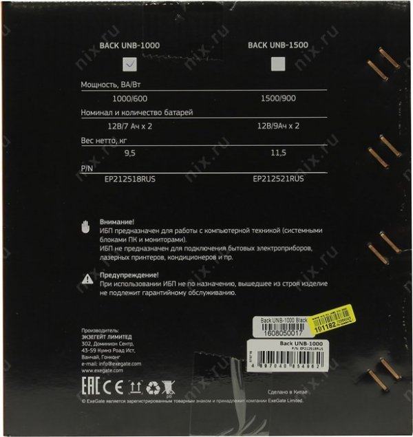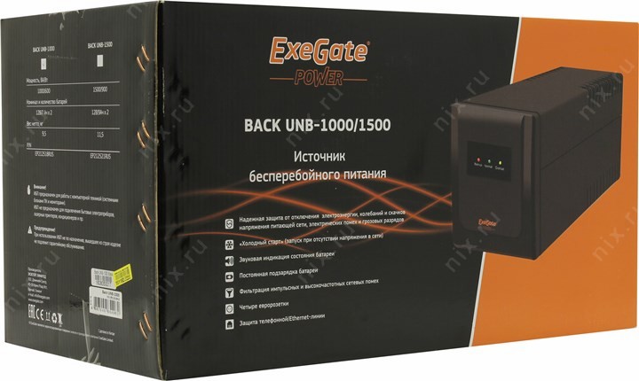 Источник бесперебойного питания 1000VA Exegate Power Back <UNB-1000> <212518> защита телефонной линии/RJ45, USB