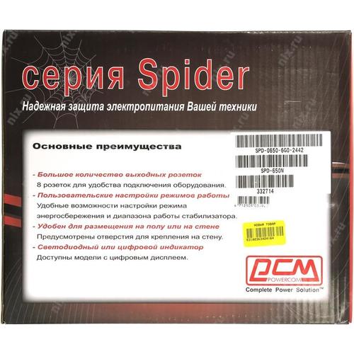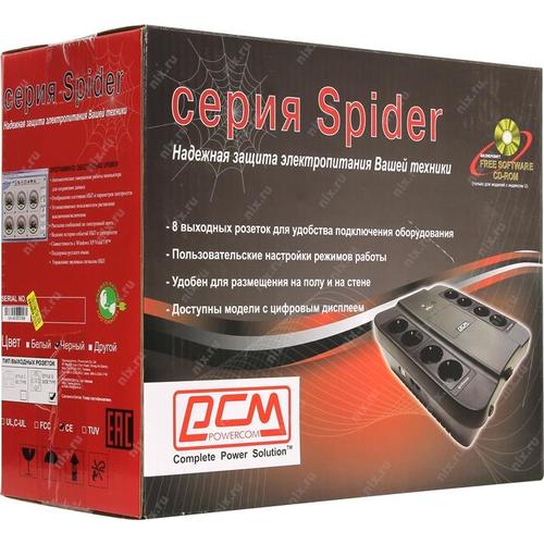 Источник бесперебойного питания PowerCom Spider SPD-650N OffLine, 650VA/390W, Tower, 8xEURO: 4 с резервным питанием, 4 с фильтрацией (332714)