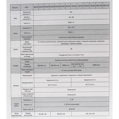 Время работы от аккумуляторов: 9 минут при нагрузке 50%, 4.5 минуты при нагрузке 70%, 1.4 минуты при нагрузке 100%