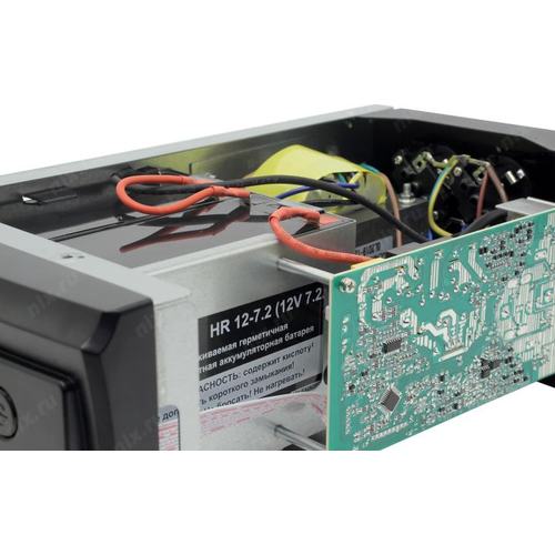 2 аккумулятора 12В, 7.2 Ач. Свинцово-кислотные, герметичные, не требуют обслуживания.