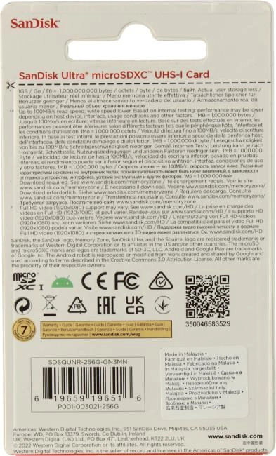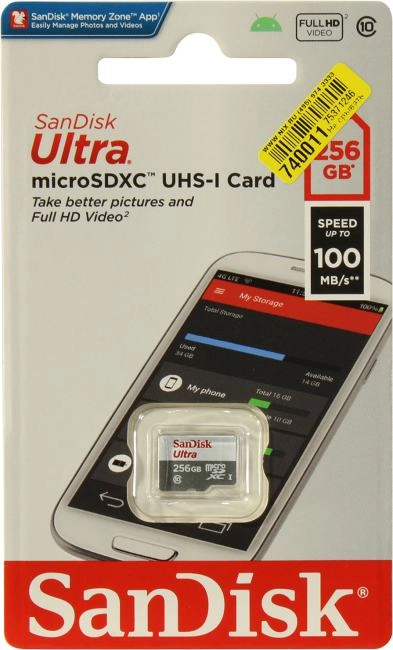 Карта памяти 256Gb - SanDisk Ultra Micro Secure Digital XC C10 UHS-1 SDSQUNR-256G-GN3MN (Оригинальная!)