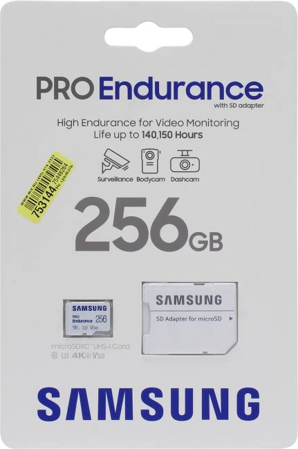 Карта памяти Samsung PRO Endurance <MB-MJ256KA/APC> microSDXC Memory Card 256Gb Class10 UHS-I U3 V30+ microSD--> SD Adapter