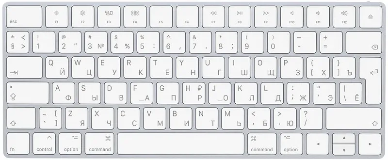 Оригинальная клавиатура для Mac или iMac со встроенным аккумулятором и Bluetooth. Apple Magic Keyboard очень тонкая, лёгкая и способна держать заряд аккумулятора больше месяца. Продуманный профиль, идеальный угол наклона и улучшенный механизм нажатия типа "ножницы" делают набор текста удобным, точным и тихим одновременно.