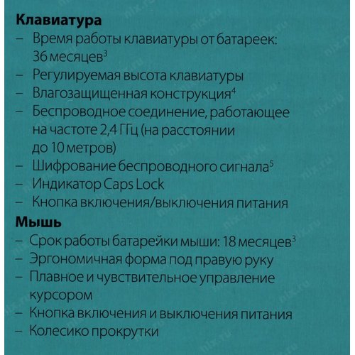 1 батарейка типа AA, 2 батарейки типа AAA, USB-приемник