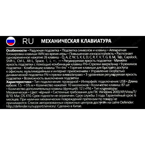 Клавиатура Defender BLITZ GK-240L <USB> 87КЛ, подсветка клавиш <45240>