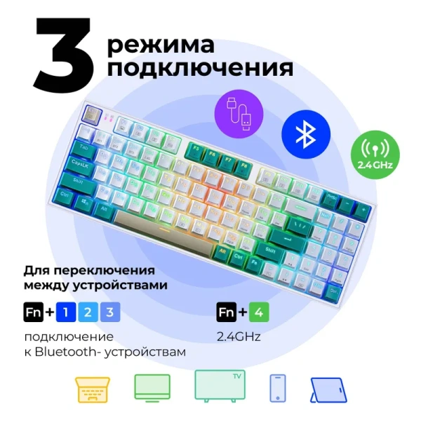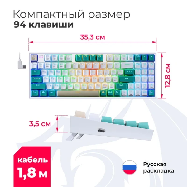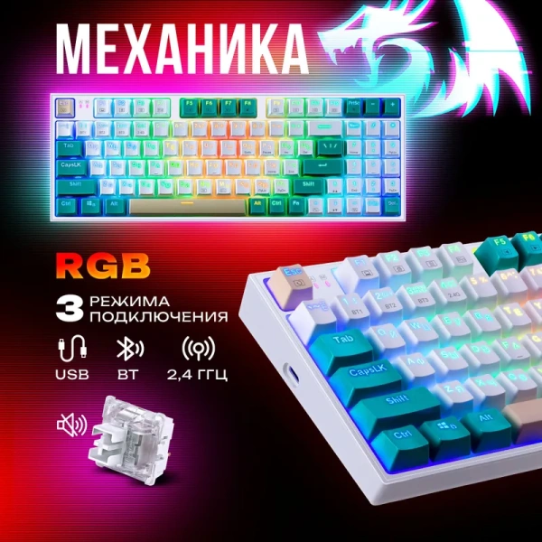 Клавиатура Redragon Veigar <K643WGC-RGB-PRO> <USB/BT/FM> 94КЛ, подсветка клавиш <71476>