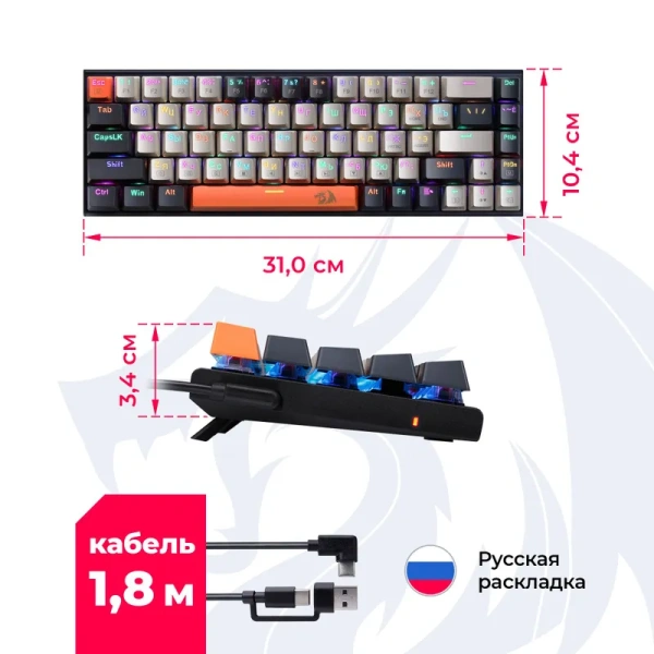 Клавиатура Redragon Ryze <K633CGO-RGB RED> <USB> подсветка клавиш <71342>