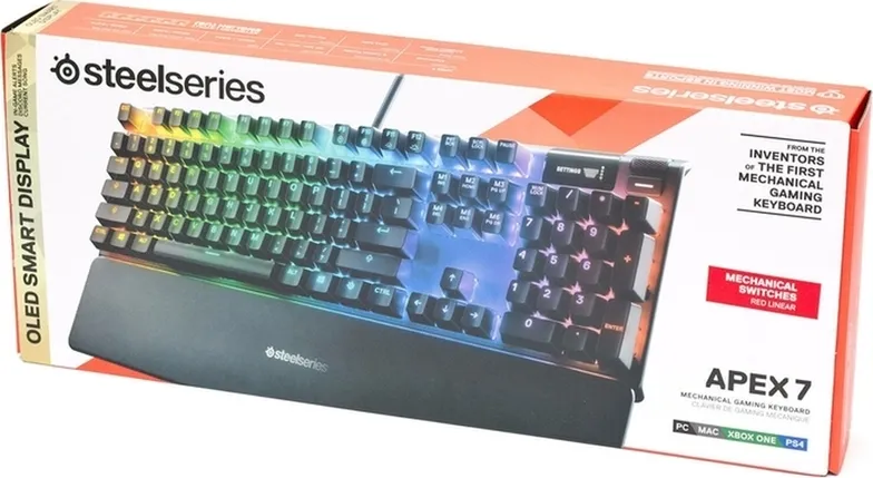 Клавиатура SteelSeries игровая проводная Apex 7, (SteelSeries QX2 Red), Русская раскладка, черный