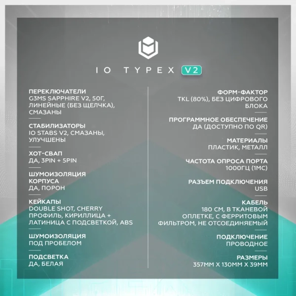 Клавиатура IO by Red Square игровая проводная Typex v2 Ice Cream <io211> (G3ms Sapphire), Русская раскладка, бирюзовый, лазурный