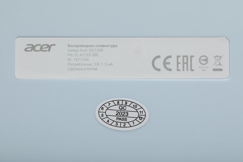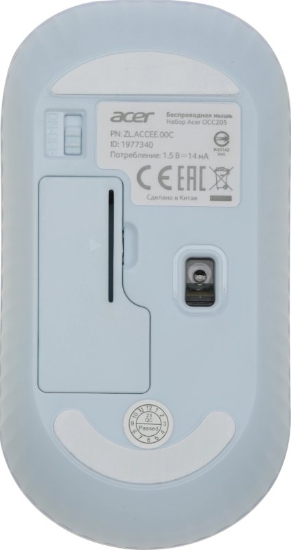 Комплект клавиатура + мышь Acer OCC205 клав:белый мышь:белый/голубой USB беспроводная slim (ZL.ACCEE.00C)