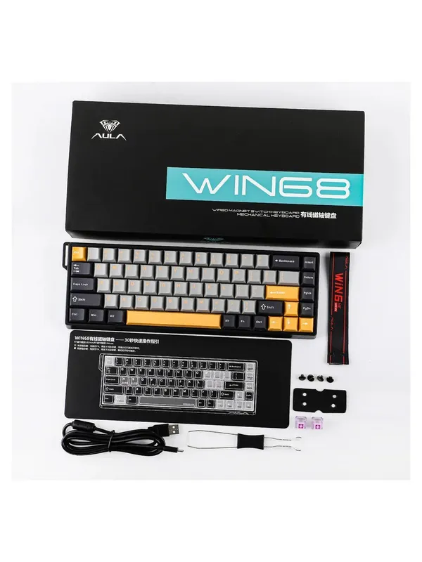 Клавиатура AULA WIN68HE MAX Wingchun magnetic switch проводная магнитно-механическая игровая, русская раскладка, разноцветная