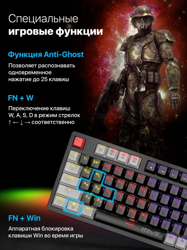 Клавиатура Defender игровая механическая проводная Hawk (96%)