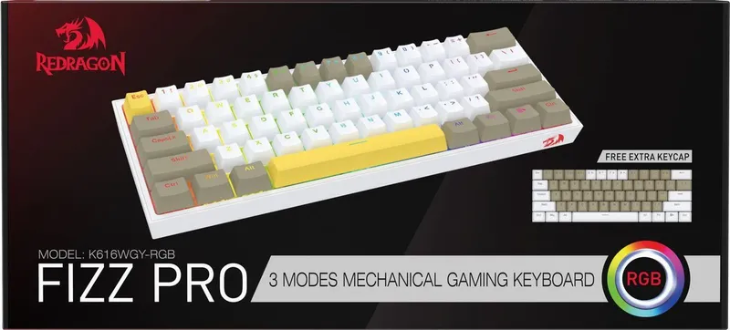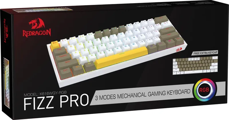 Клавиатура Redragon Fizz Pro RU беспроводная механическая, русская раскладка, бежевая, желтая