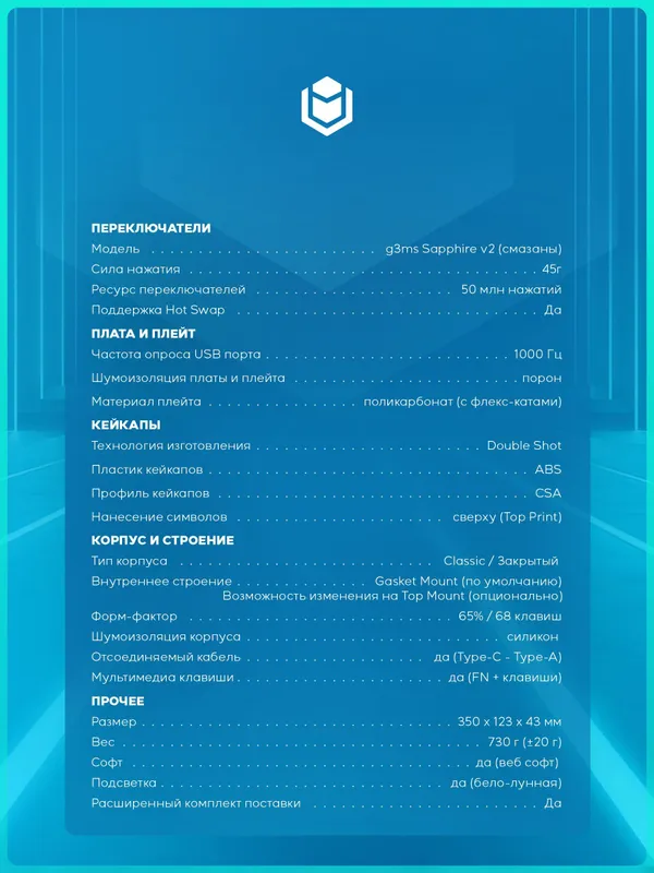 Клавиатура IO by Red Square Type 68 SE Black Sapphire проводная механическая игровая, русская раскладка, черная