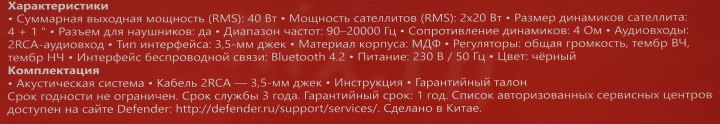 Колонки Defender Aurora S40 BT 65240