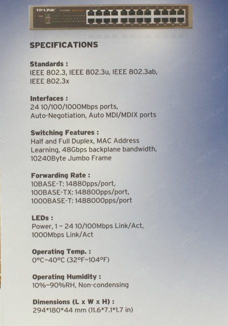 Коммутатор TP-LINK < TL-SG1024D> (24UTP 10 / 100 / 1000Mbps)