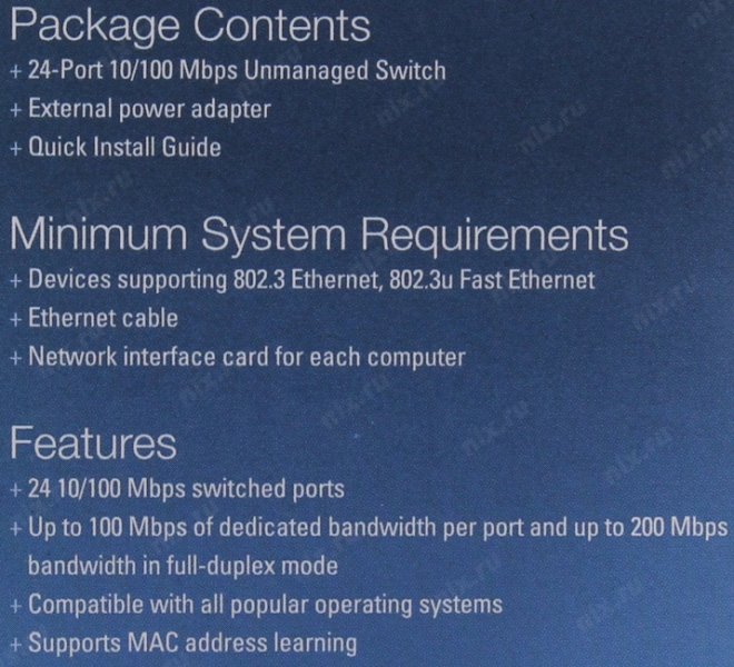 Порты Fast Ethernet: 24 порта 10/100 Мбит/сек