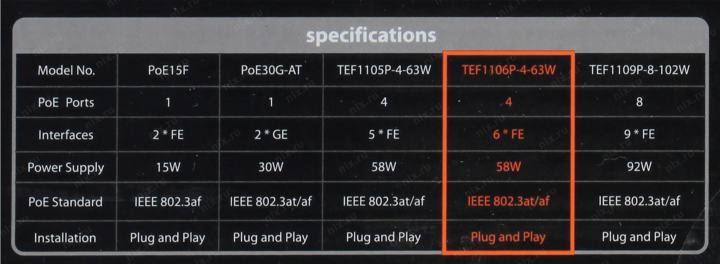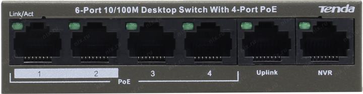6 портов 10/100 Мбит/сек, 4 из них PoE PSE