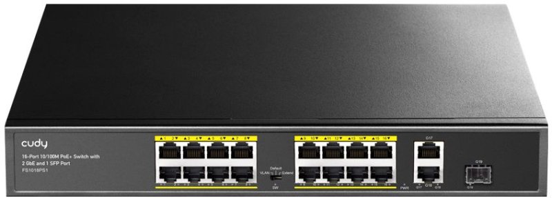 Коммутатор Cudy FS1018PS1 (L2) 16x100Мбит/с 2x1Гбит/с 1SFP 16PoE+ 200W неуправляемый