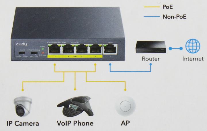 Коммутатор CUDY <GS1005P> 5-Port Gigabit PoE+ (4UTP 1000Mbps PoE + 1UTP 1000Mbps)