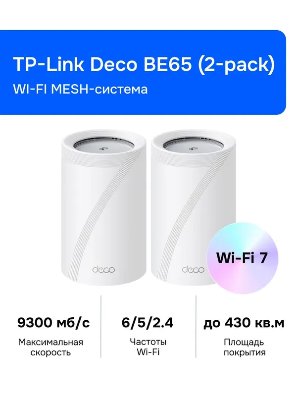 Маршрутизатор TP-Link Deco BE65(2-pack) BE9300 Трехдиапазонная домашняя Mesh-система Wi-Fi 7