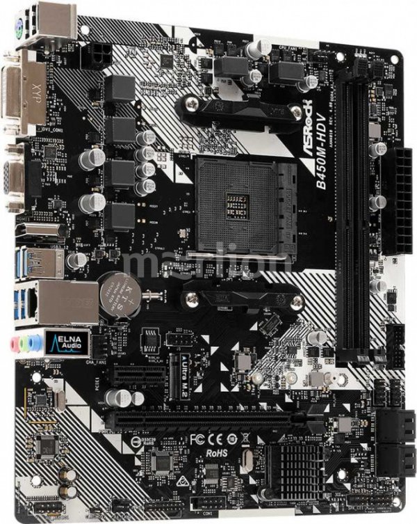 Материнская плата Asrock B450M-HDV R4.0 Soc-AM4 AMD B450 2xDDR4 mATX AC`97 8ch(7.1) GbLAN RAID+VGA+DVI+HDMI