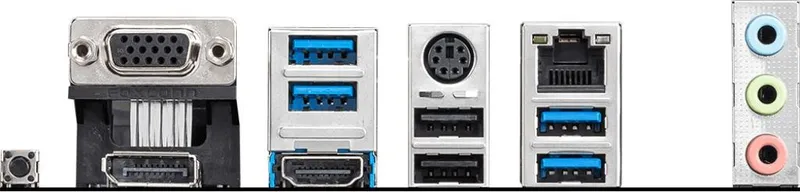 USB разъемы на задней панели: 4x USB 3.0 (USB 3.1 Gen1), 2x USB 2.0; Аудио разъемы на задней панели: Line-in, Line-out, Mic-in; Видео разъемы на задней панели: DisplayPort, HDMI, 15-пиновый коннектор D-Sub
