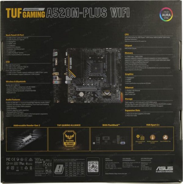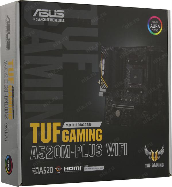 Материнская плата ASUS TUF GAMING A520M-PLUS WIFI (RTL) AM4 <AMD A520> PCI-E Dsub+ HDMI+DP GbLAN+WiFi+BT SATA MicroATX 4DDR4