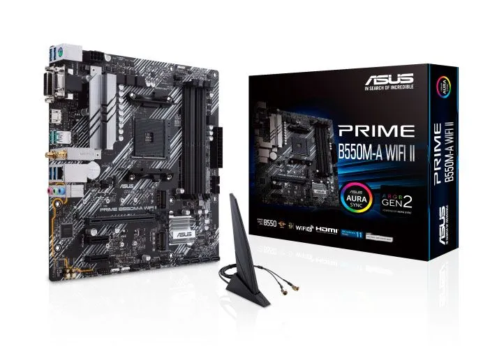 Материнская плата ASUS PRIME B550M-A WIFI II, Socket AM4, B550, 4*DDR4, D-Sub+DVI+HDMI, SATA3 + RAID, Audio, Gb LAN, USB 3.2*8, USB 2.0*4, COM*1 head