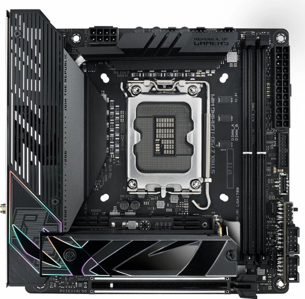 Материнская плата ASUS ROG STRIX Z790-I GAMING WIFI Soc-1700 INTEL Z790 2xDDR5 mini-ITX AC`97 8ch(7.1) 2.5Gg RAID+HDMI