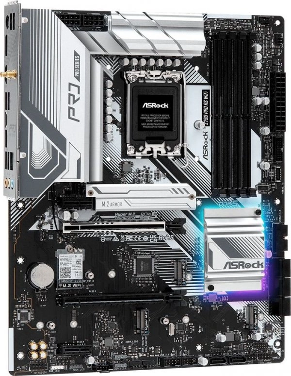 Материнская плата Asrock Z790 PRO RS WIFI Soc-1700 INTEL Z790 4xDDR5 ATX AC`97 8ch(7.1) 2.5Gg RAID+HDMI+DP