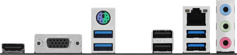 USB разъемы на задней панели: 4x USB 3.0 (USB 3.1 Gen1), 4x USB 2.0; Аудио разъемы на задней панели: Line-in, Line-out, Mic-in; Видео разъемы на задней панели: HDMI, 15-пиновый коннектор D-Sub; Порты: 1x COM (внутренний коннектор), 1x RJ-45 LAN