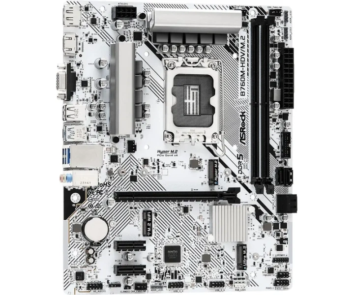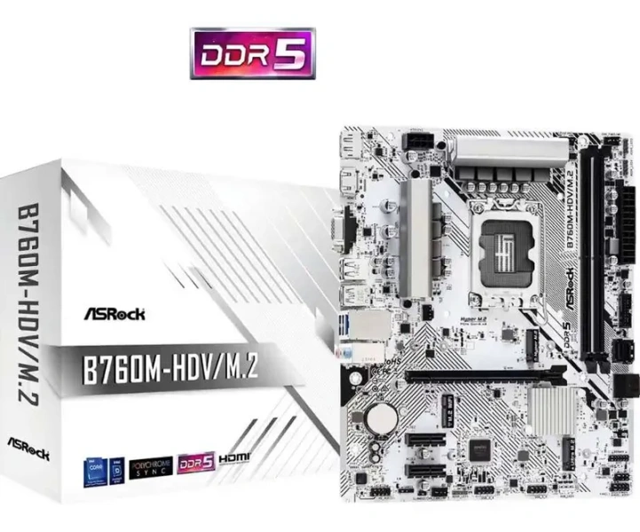 Материнская плата Asrock B760M-HDV/M.2 Soc-1700 INTEL B760 2xDDR5 mATX AC`97 8ch(7.1) 2.5Gg RAID+VGA+HDMI+DP