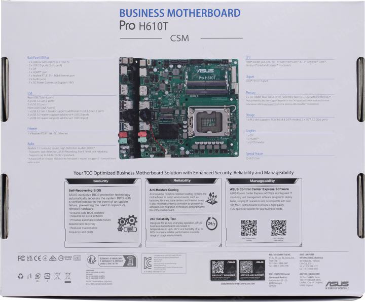 Материнская плата ASUS PRO H610T-CSM (RTL) LGA1700 <H610> PCI-E HDMI+DP GbLAN SATA Mini-ITX 2DDR5 SODIMM
