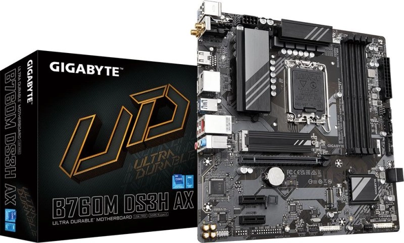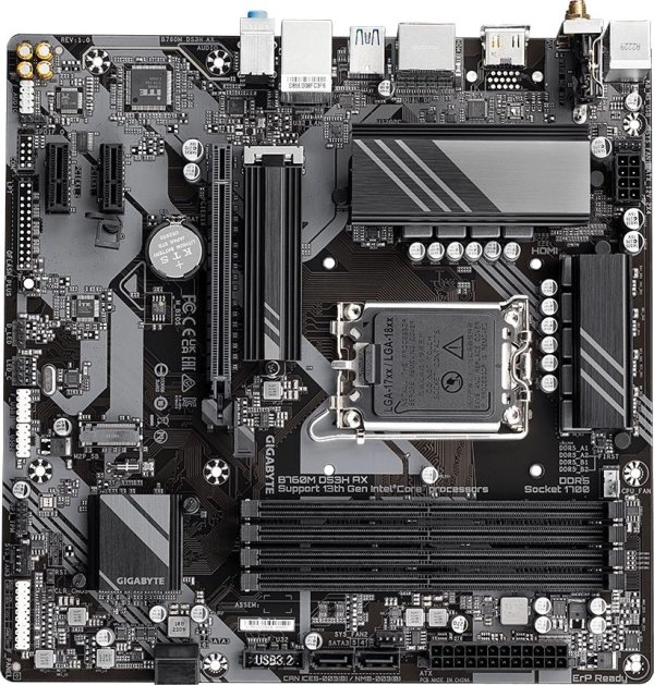 Материнская плата Gigabyte B760M DS3H AX Soc-1700 INTEL B760 4xDDR5 mATX AC`97 8ch(7.1) 2.5Gg RAID+HDMI+DP
