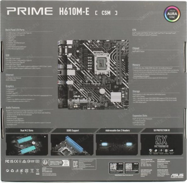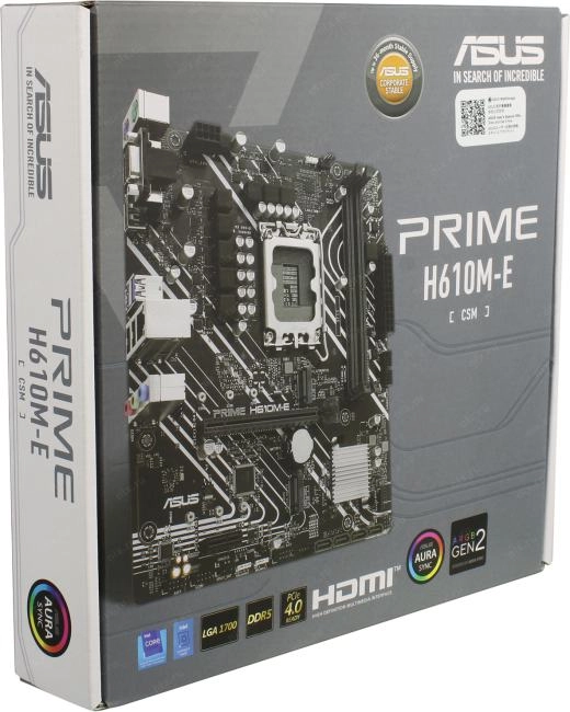 Материнская плата ASUS PRIME H610M-E-CSM (RTL) LGA1700 <H610> PCI-E Dsub+HDMI+DP GbLAN SATA MicroATX 2DDR5