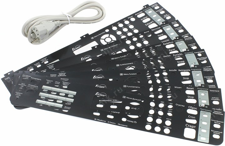 Диск с ПО, кабель питания, пробный картридж
