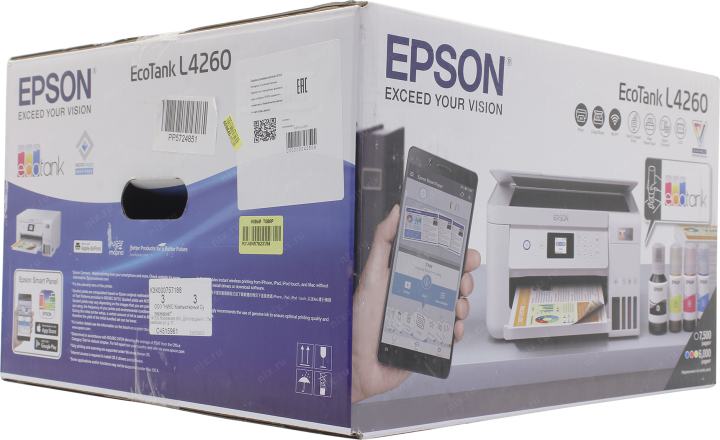 МФУ Epson EcoTank L4260 (A4, струйное , LCD, 33стр/мин, 5760x1440dpi, 4 краски, USB2.0, WiFi, двусторонняя печать) белый