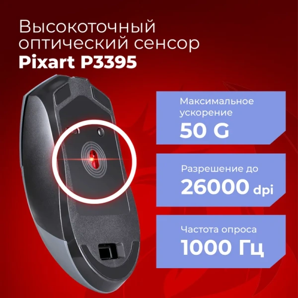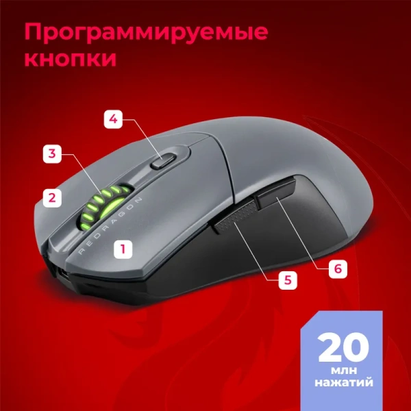 Мышь беспроводная игровая компьютерная Redragon ST4R PRO 6 кнопок, 26000 DPI, черно-серая